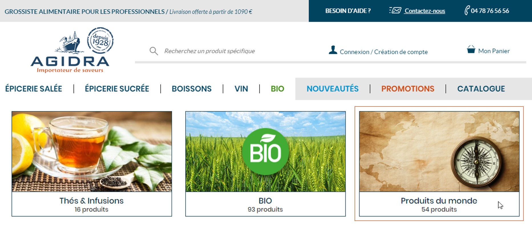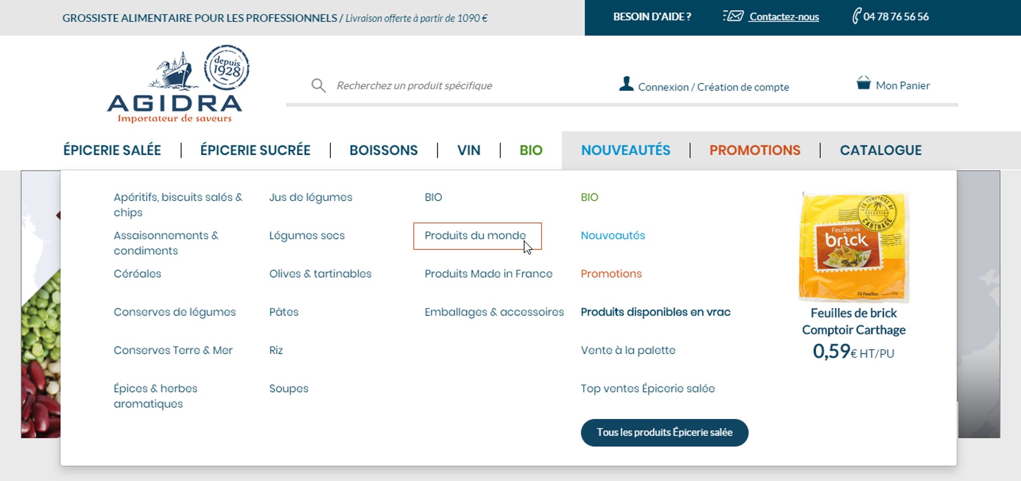 Pour retrouver tous les produits « Saveurs du monde » sur notre site, cliquez sur « Produits du monde », dans le menu principal en haut de chaque page de notre site en survolant les familles de produit.